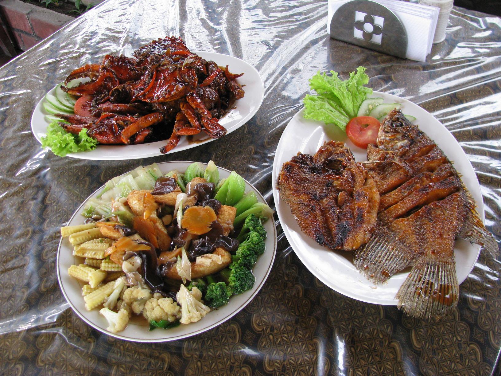 Sajian menu sayuran lainnya yakni aneka ca Rp20.000, cap cay Rp26.000, taoge ikan asin Rp12.500, kangkung ca seafood Rp15.000, terong pete balado Rp12.500 per porsinya.