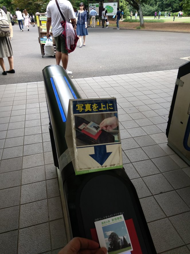 Untuk memasuki taman bisa memilih antara tiga gerbang; via Shinjuku, Okido, atau Sendagaya yang buka dari pukul 09.00 sampai 16.30 waktu setempag. Pada hari Senin, taman ditutup, kecuali saat musim sakura dan krisan, yaitu akhir Maret sampai dengan akhir April dan awal November. Pada waktu tersebut, taman dibuka setiap hari dan rumah kaca dibuka dari pukul 09.30 sampai 16.00.